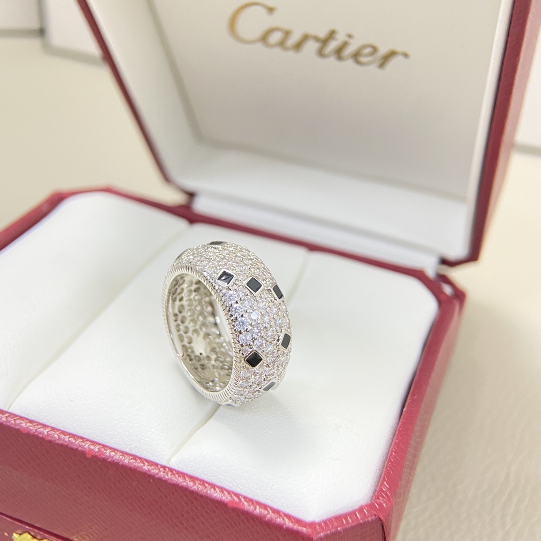 白金 / 銀色 / White Gold / Silver Tone:銀白色底托,滿鑽 + 黑色琺瑯斑點,更顯清冷精緻 / Silvery-white base with full pavé diamonds and black enamel spots, for a cooler, more refined look