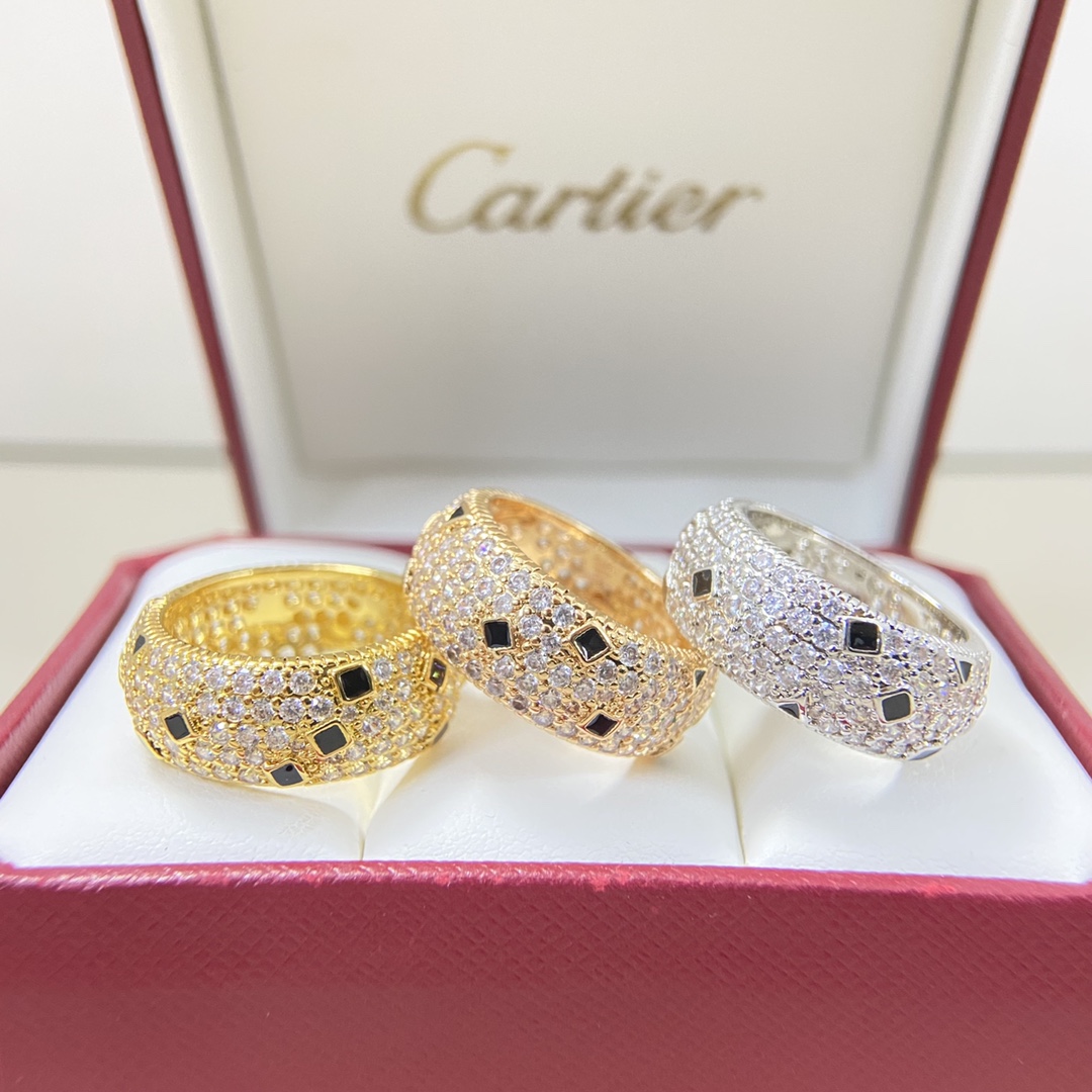 玫瑰金色 / Rose Gold Tone:偏暖的粉金色底托,同樣是滿鑽 + 黑色斑點設計 / Warm pink-gold base with the same full pavé diamonds and black spot design