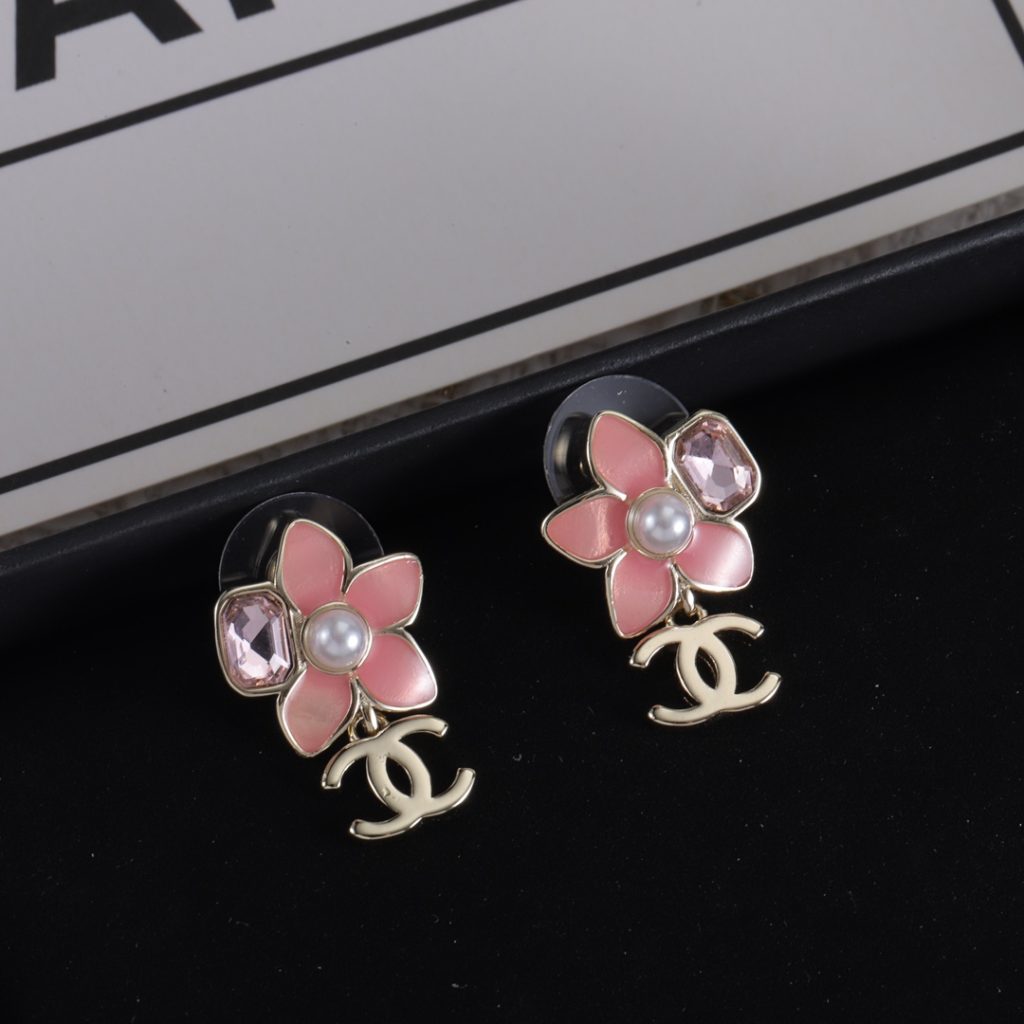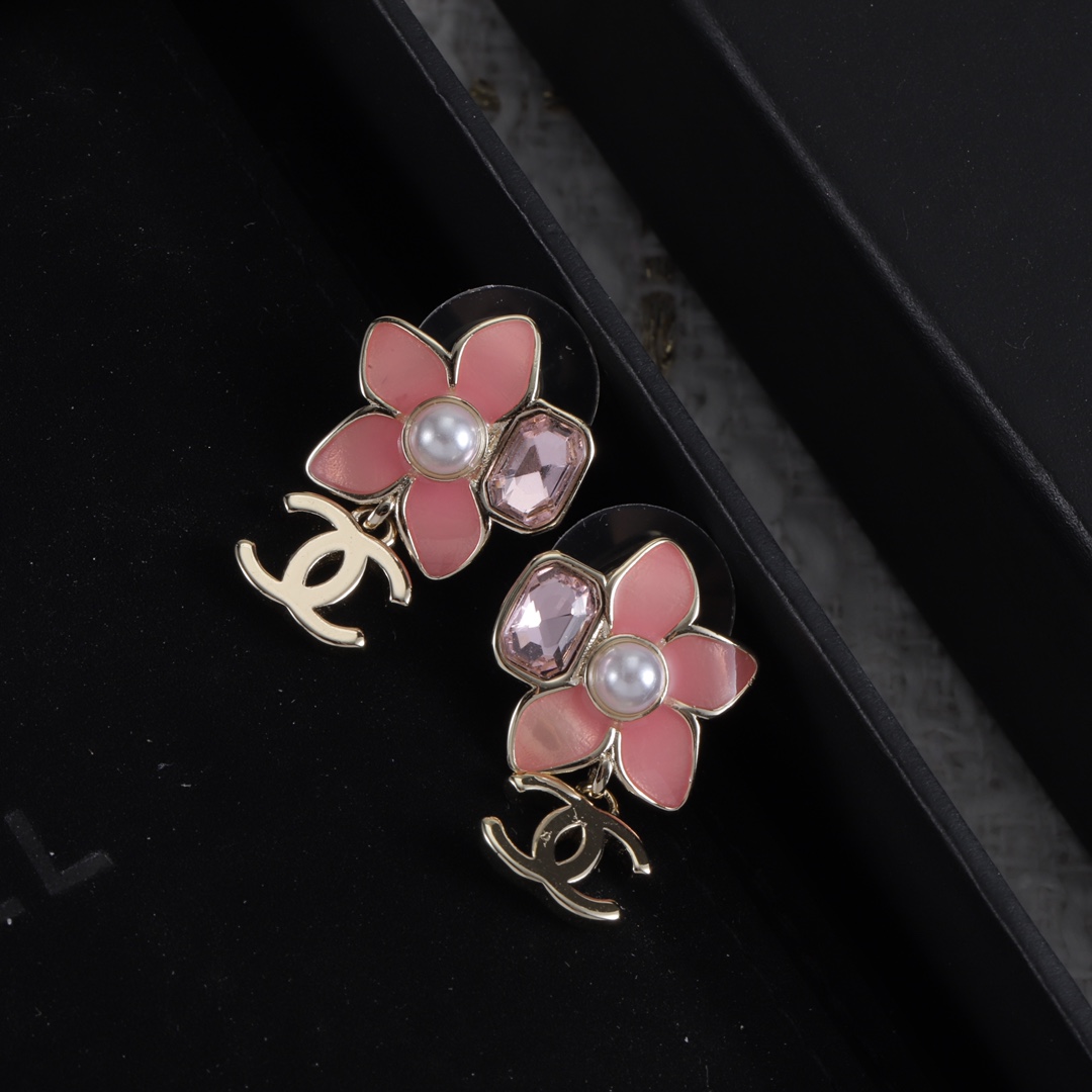 Crafted from premium alloy, each earring features a delicate five-petal flower in soft blush pink enamel, centered with a lustrous imitation pearl and paired with a faceted crystal accent for subtle sparkle.
