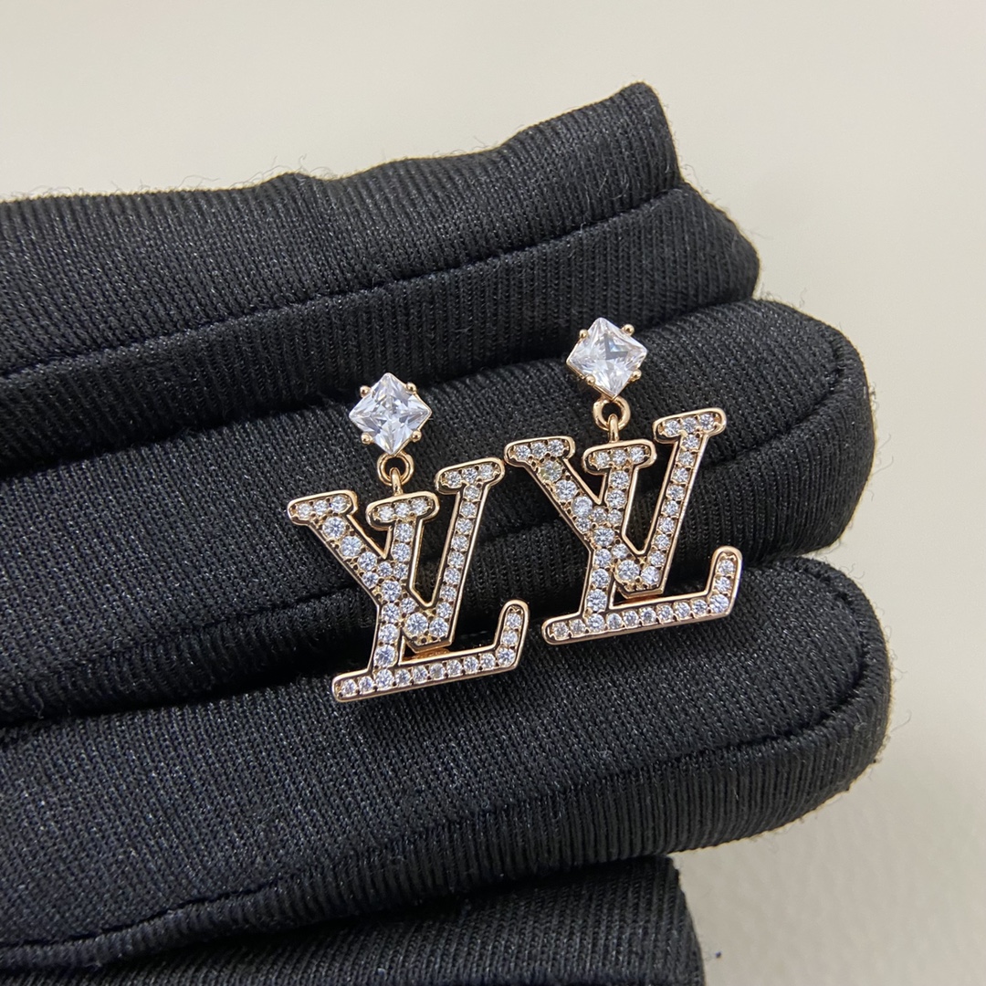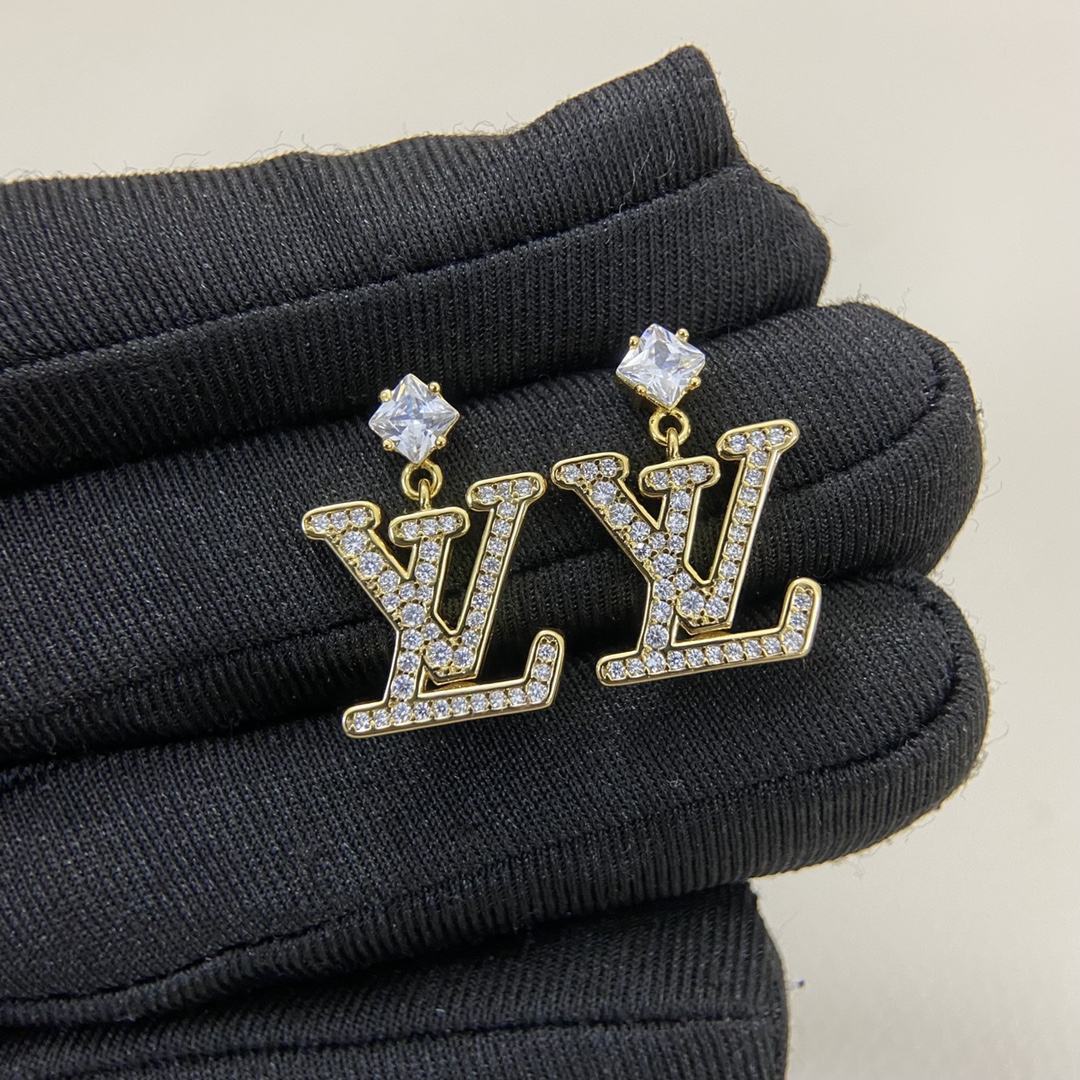 新品滿鑽字母耳吊(貨號:LVEDL0003-),高品質合金材質,多層加厚電鍍,色澤亮麗持久不易氧化。
