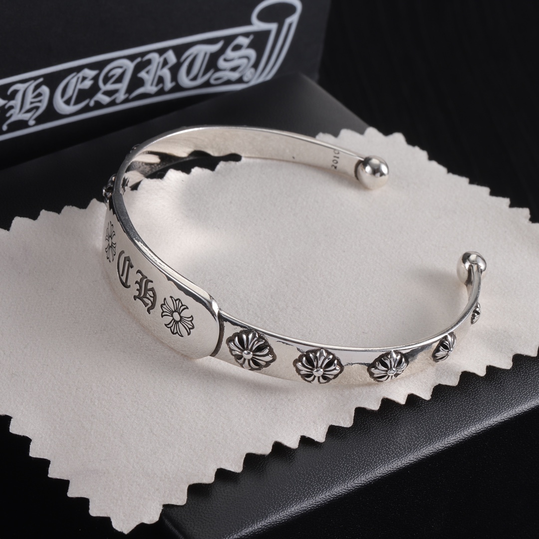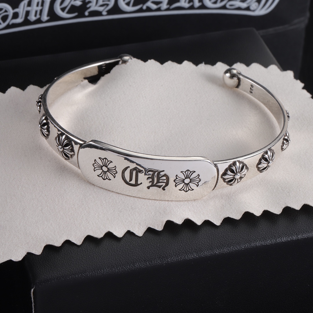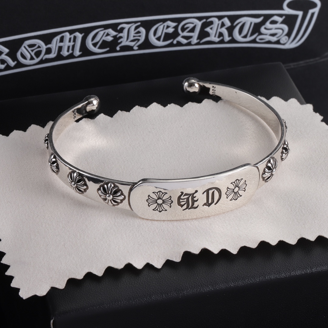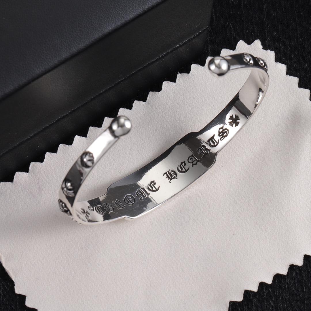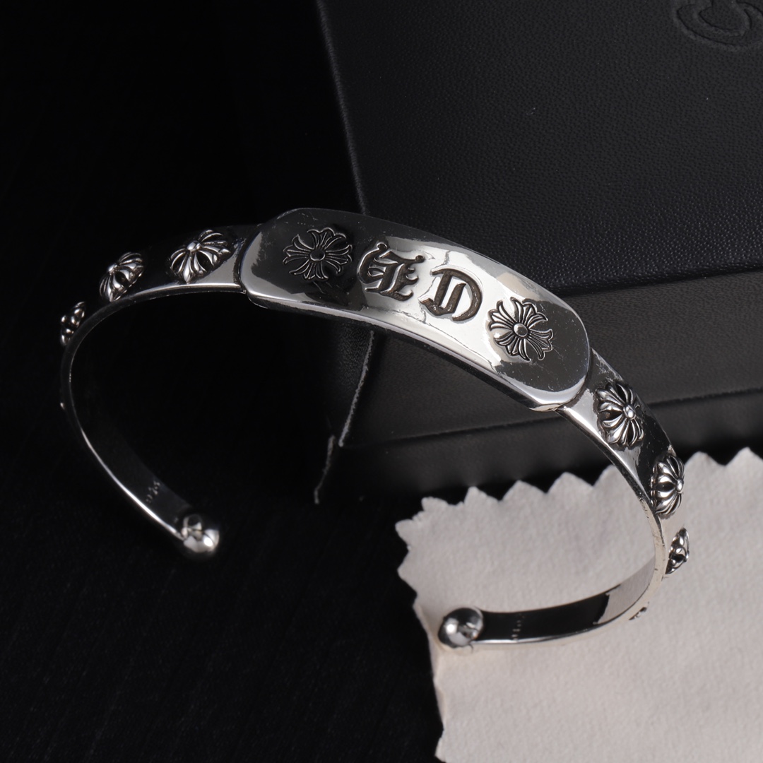 Vintage Chrome Hearts style bracelet with fine electroplating craft, distressed finish for premium vibe, simple lines with classic elements, versatile and stylish, unisex for daily wear.